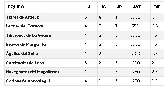 • Águilas del Zulia y Tigres de Aragua se medirán en Maracay (7:00 p. m.).