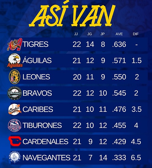 - Tigres de Aragua vs Águilas del Zulia. 7:00 p. m. Maracaibo