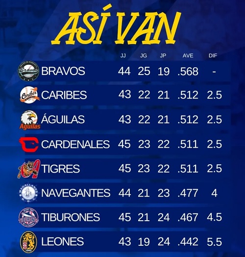| Cardenales vs. Caribes | 7:00 p.m. | Puerto La Cruz |