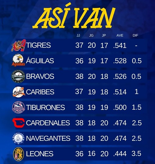 Esta victoria le permite a Caribes terminar el mes de noviembre con una marca positiva de 19-18 y mantenerse a solo un juego de diferencia de los propios Tigres (20-17), con quienes dividieron honores en la serie de fin de semana.