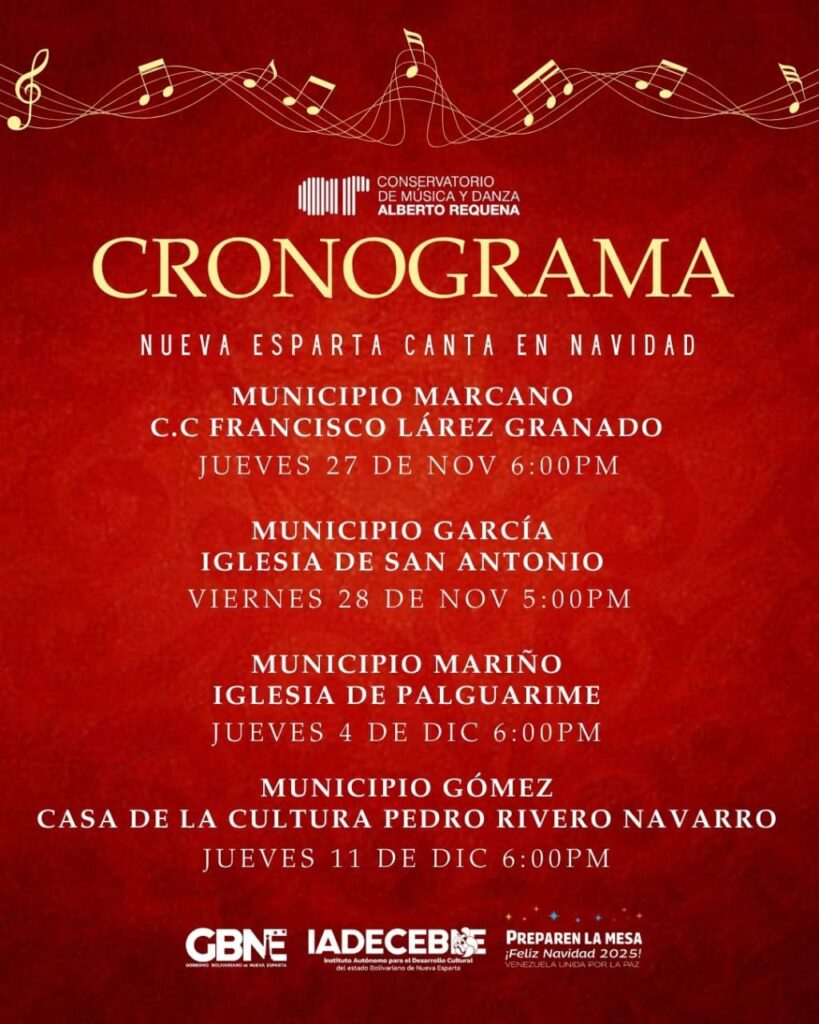 Se invita a toda la población neoespartana a estar atenta a la programación detallada de las paradas de la coral en sus respectivas comunidades, para contagiarse de la alegría que nos une en Navidad.