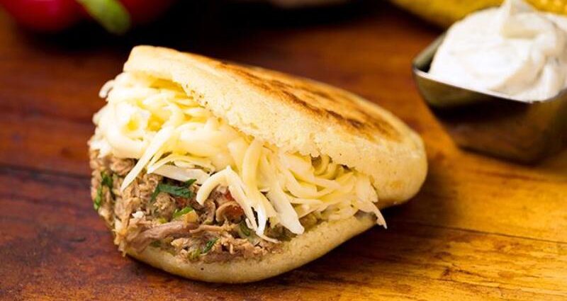 La arepa, plato típico de Venezuela, es un alimento a base de harina de maíz que tiene forma circular. Es de rápida preparación y puede llevar ifinidad de rellenoso: jamón, queso, carne, pollo, mantequilla, caraotas, etc., o combinaciones de estos y otros ingredientes.