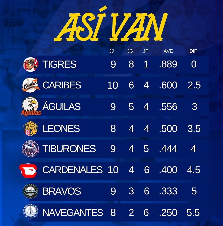 Los Tigres de Aragua se mantienen como el equipo a vencer al conseguir su cuarto triunfo en fila, batiendo a los Navegantes del Magallanes con un ajustado marcador de 3 carreras por 2 en Maracay. Con esta victoria, el conjunto bengalí consolida su posición como líder absoluto de la tabla de clasificación, mejorando su récord a un dominante 8-1 y sacando 2.5 juegos de ventaja sobre su más cercano escolta, Caribes de Anzoátegui.