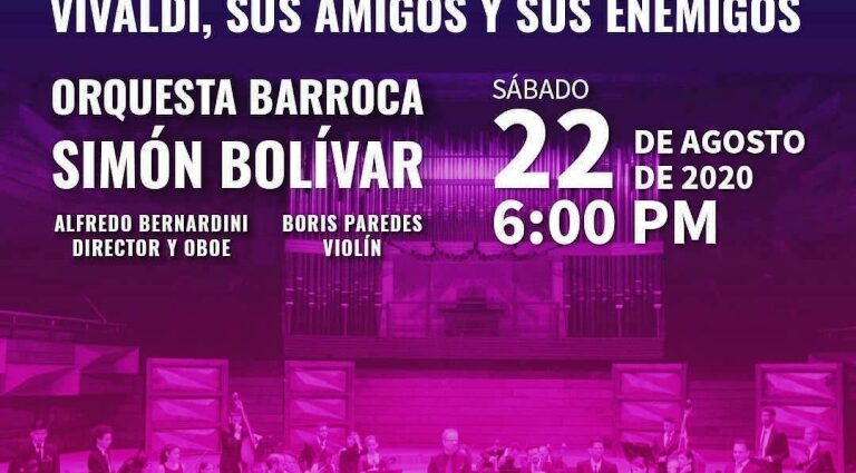 El sábado 22 de agosto, a través de la Sala Virtual del Sistema de Orquestas y Coros de Venezuela, el público disfrutará de un vigoroso concierto ofrecido por la Orquesta Barroca Simón Bolívar, bajo la dirección del maestro Alfredo Bernardini. Esta presentación titulada Vivaldi, sus amigos y enemigos incluyó una variedad de obras significativas del compositor italiano, así como piezas creadas por grandes músicos coetáneos.